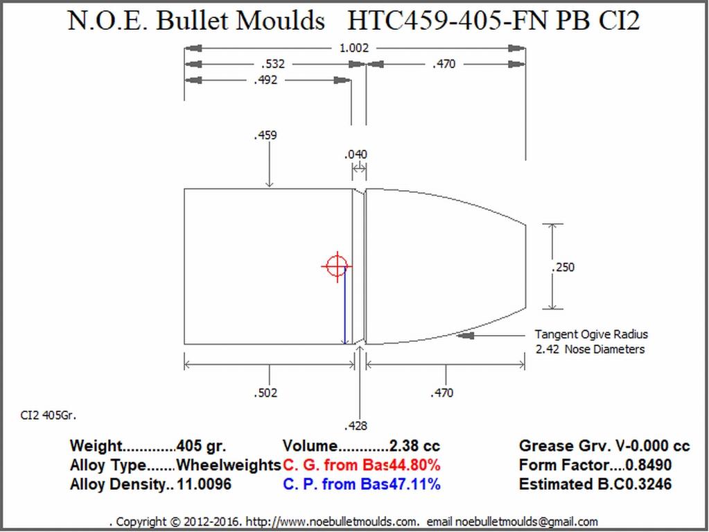 It is a great design with the ability to cast 4 different bullet weights with a single mould utilizing 4 different sets of RG type base pins for each bullet size to make the following:a 290 gr. hollow base bullet: