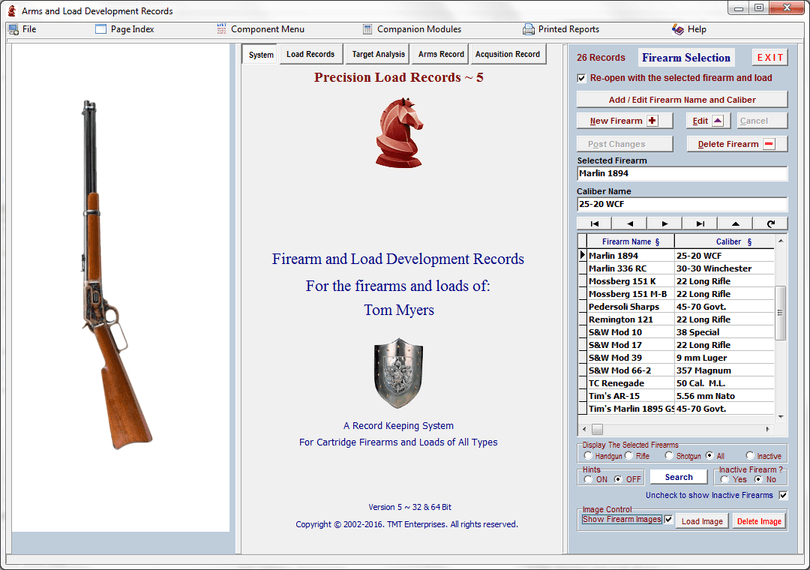 Precision Records – The Precision Records and Load Development system may be installed as a companion of Precision Ballistics and is designed to provide a Firearm and Load Record system for shooters and ammunition reloaders of all types of sporting firearms.