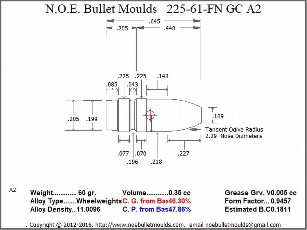 225-61-FN-A2 5 cavity GC Brass RCBS 22-055 FN