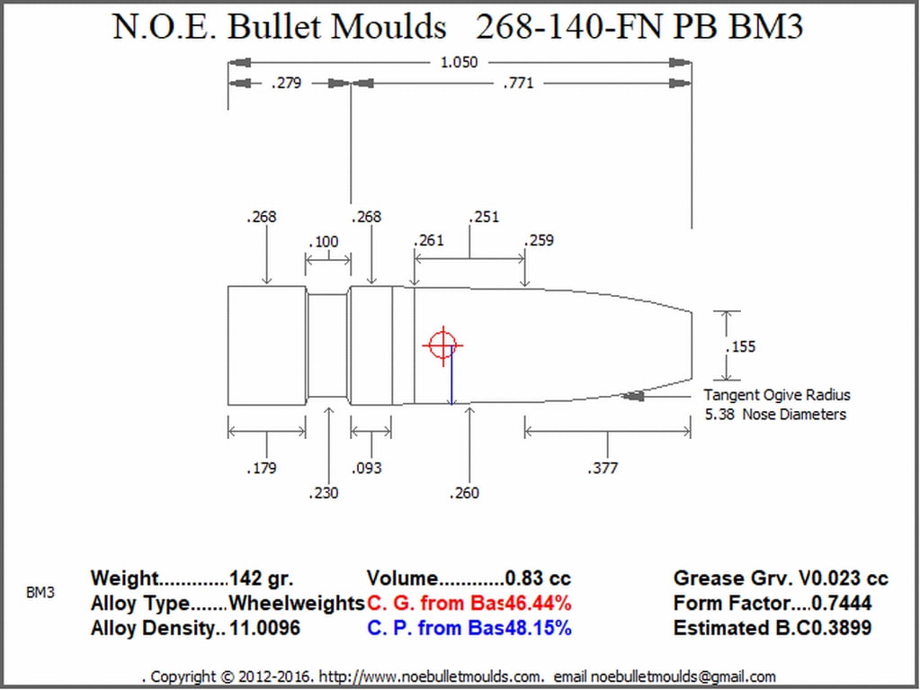 The 268-140-FN-BM3-21 is a 2 Cavity Aluminum mould. This mould drops a .268 caliber plain base 140 grain bullet with a Flat nose profile type. Designed for use in 6.5 Creedmoor 6.5 x55 and 264 Winchester.
