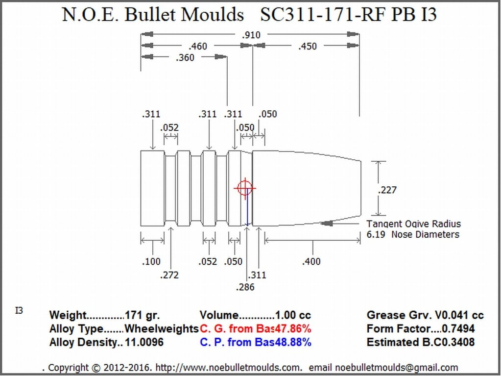 This is a copy of the Older Ranch Dog bullet with standard lube grooves