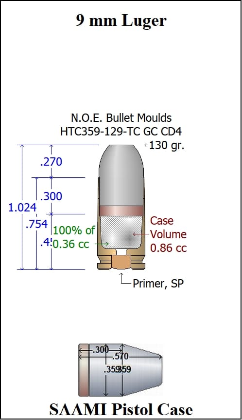 HTC359-129-TC CD4 This mould drops a .359 caliber 129 grain bullet with a Truncated Cone Nose profile type.  A great little bullet for just plane fun plinking. Works in just about all 9mm’s 38Spcl. and 357Mag.