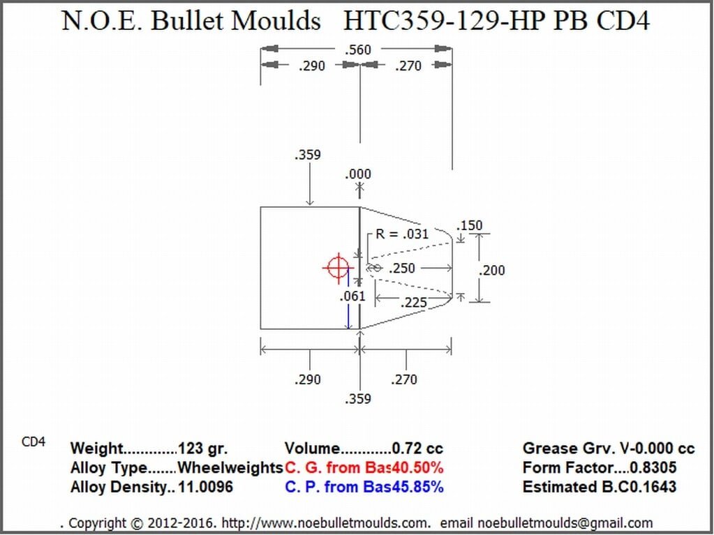 HTC359-129-TC-CD4 RG2 cavity PB Comes with HP, FN and Cup Point Pins