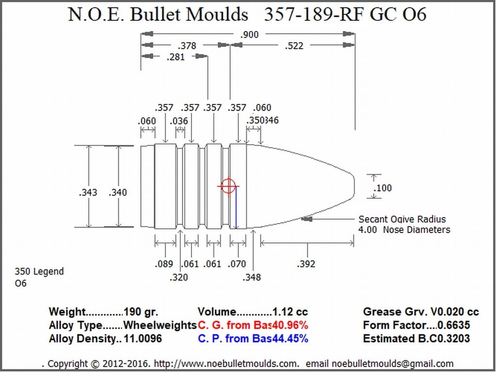 This is a 5 cavity aluminum mould that drops a 190gr .357 inch gas checked bullet designed specifically for use in the 350 Legend.