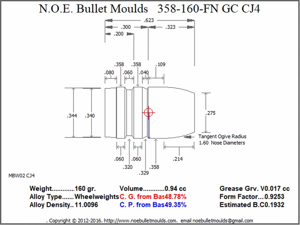 358-160-FN-CJ4 This mould drops a .358 caliber 160 grain bullet with a Flat Nose profile type. Our version of the LBT 358-160-WFN.  Works great in 38 S&W Spcl. 357Mag and 357Max cartridges and is a real performer in a 357Mag Lever Action Rifle. Makes a great small game bullet and is  a very good utility bullet.