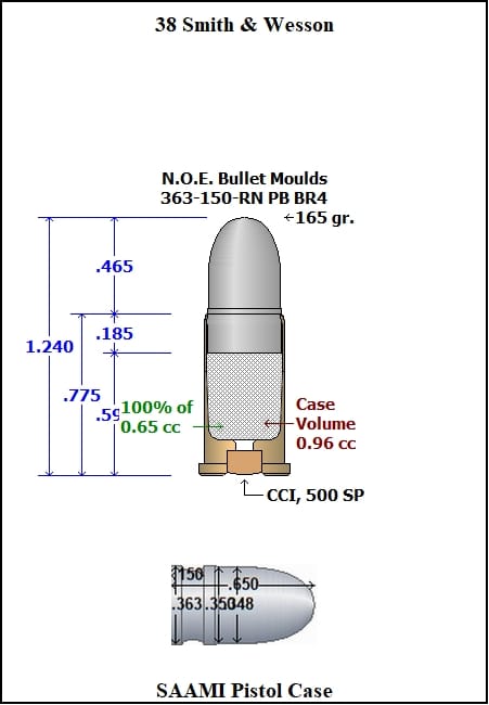 363-150-RN-BR4 This mould drops a .363 caliber 150 grain bullet with a Round Nose profile type. Made for the 38 S&W and 38 Colt New Police. Simaler to the Remington 147 Gr Round Nose factory bullet. Makes a great plinker or utility bullet.