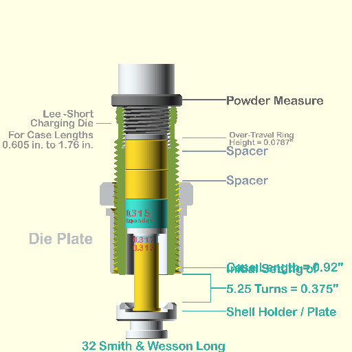 Everything you need to expand 32 S&W Long Cases using our new powder through expander except the short die body.