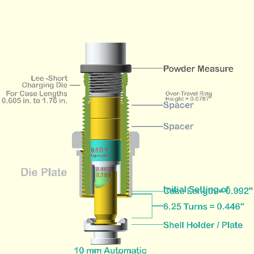 Everything you need to expand 10mm Auto cases using our new powder through expander including the short die body.