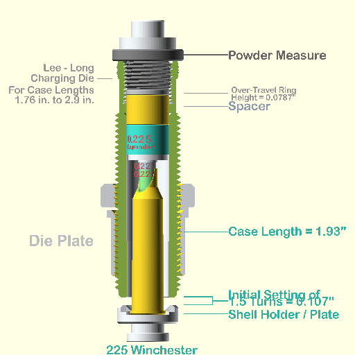 Everything you need to expand .225 Winchester cases using our new powder through expander including the long die body.