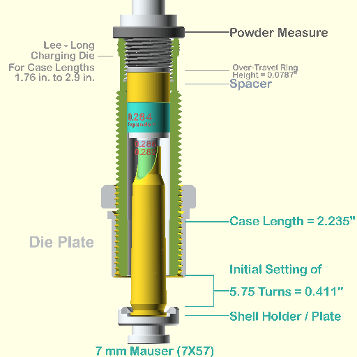 Everything you need to expand 7×57 Mauser cases using our new powder through expander including the long die body.